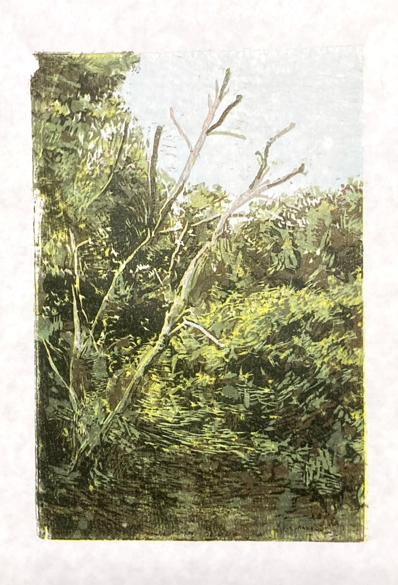 All works are reduction woodcuts created from my own photographic imagery. Each print is produced in a limited edition, and due to the reductive printing process, cannot be reproofed. Prints are made on Japanese papers of varying weights, with each one comprising a minimum of eight layers of oil-based archival inks.
